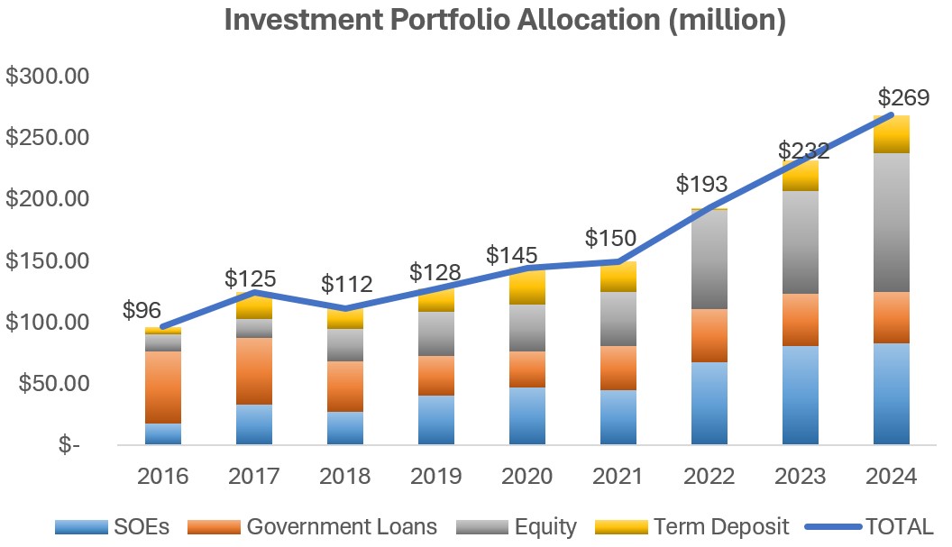 - Listed Equities – Unit Trust of Fiji, BSP Financial Group(PNG & Australia), ATH Group (Fiji)